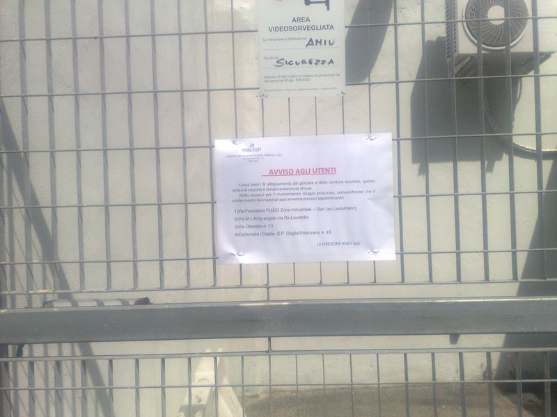 Nello scusarci per il momentaneo disagio procurato, comunichiamo che il conferimento dei materiali può avvenire presso i seguenti centri