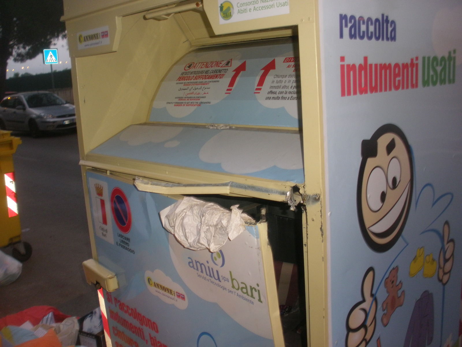 Il presidente dell’Amiu Puglia, Gianfranco Grandaliano, commenta così l’ennesimo atto di vandalismo registrato a Bari ai danni di cassonetti e contenitori per la raccolta differenziata. Ieri notte, dopo i cassonetti divelti e bruciati tra Picone e Poggiofranco e i cestini danneggiati nei pressi del Castello Svevo nelle scorse settimane, è stata la volta dei contenitori per la raccolta indumenti e plastica della zona di via Mitolo, nel quartiere Poggiofranco, seriamente danneggiati nella notte.